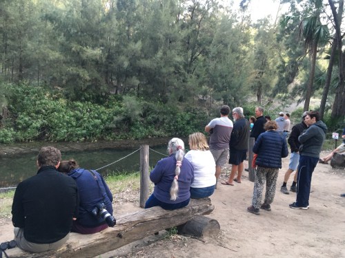 Campers patiently hoping to spot the elusive platypus