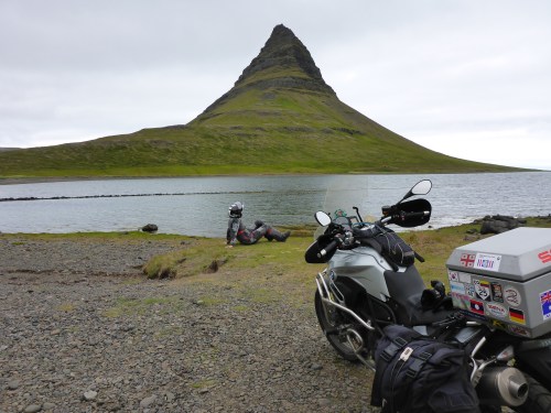 Luckily, the campsite at Skaftafell is huge and pretty empty. There are no showers which is fine for but nowhere for me to leave my camera battery recharger. We do use the cafetaria to recharge our electronic equipment for a shortwhile but that is not sufficient for my camera. Sadly on this trip, I found out that my usb device on my bike was now faulty and I have not been able to recharge while riding. And the 4 new batteries I bought at the start of the trip, while they have the same specifications as the original Panasonic ones, only last a third of the time… that means that the one time on this trip that we’ve had blue skies and fabulous scenery, I have not been able to recharge my batteries so have had to use my phone camera while walking to save the Panasonic one for riding. This I came to regret to next day when we hiked towards Vatnajökull glacier’s Skatafell outlet. Very much first world problem, but this trip has shown us how dependent on power we are. Time to look into solar panels for our top boxes maybe.