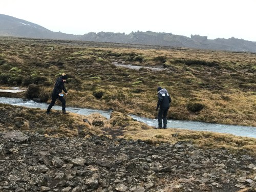 Trying to wash our muddy boots at Hafnarfjördur, Iceland
