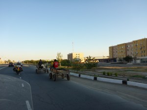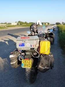 While we have 14 litres of fuel each extra, headwinds and the fact we are using 80 octane fuel, albeit with a booster additive, means we cannot be too complacent about how fast we travel on the good stretches of road – some fuel we have purchased has sediment which looks like that found in old wine bottles, so do not decant it all into the tank. We do have enough to reach Nukus some 550 km away which we reach after a long day’s riding.