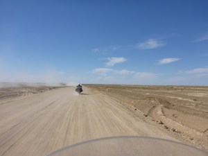 We had heard that the road on the Kazakhstan side was difficult and this proved to be true, it is mostly dirt, which in many ways is easier than pot-holed tar. We tend to be quicker than the cars across this surface, but we are always listening for a telltale rattle that something has come loose. We only have about 45 miles / 70 kilometres of this surface before we return to tar. It just confirms I am not a dirt rider, I will do it, but it gives me no pleasure.