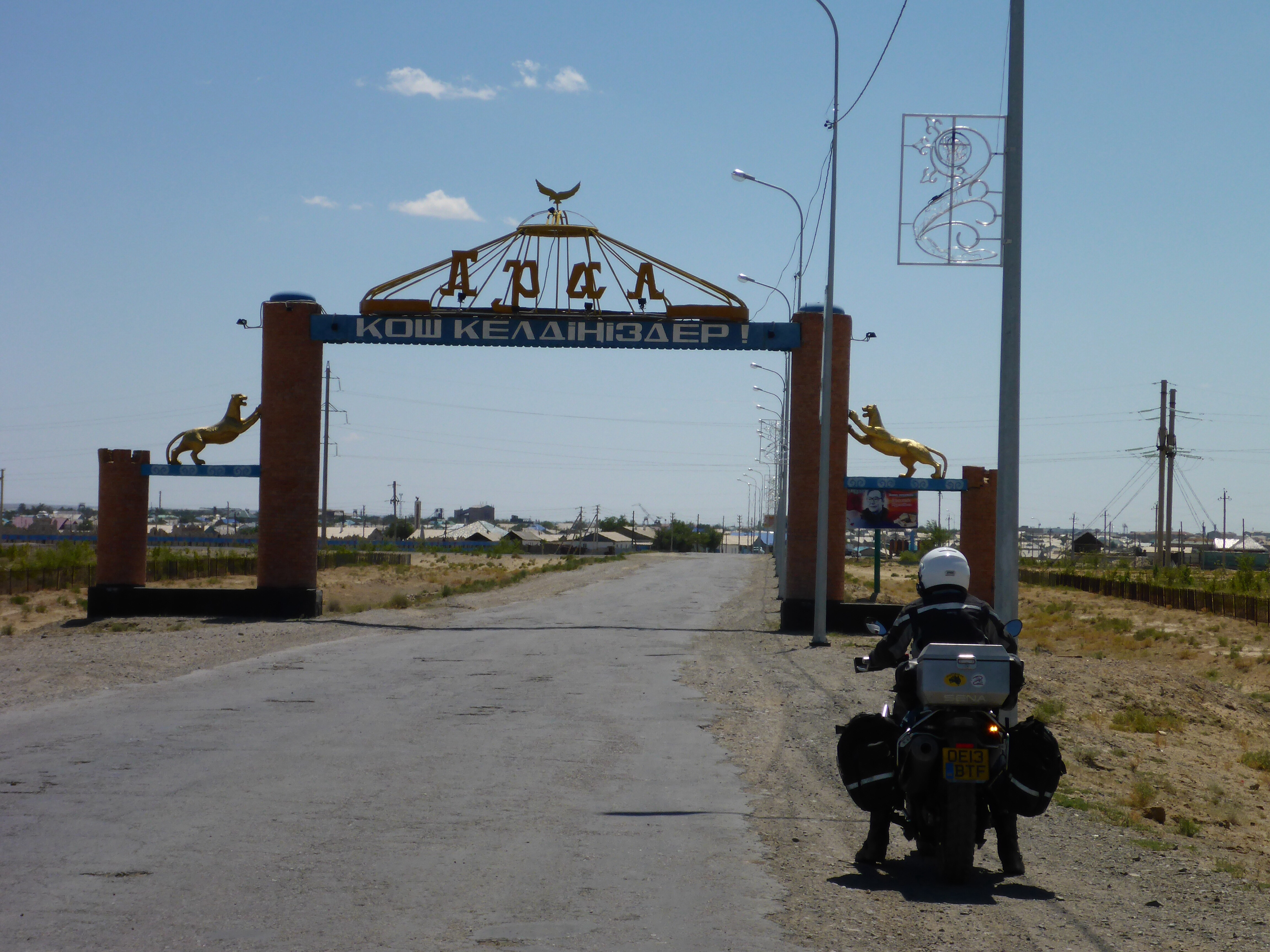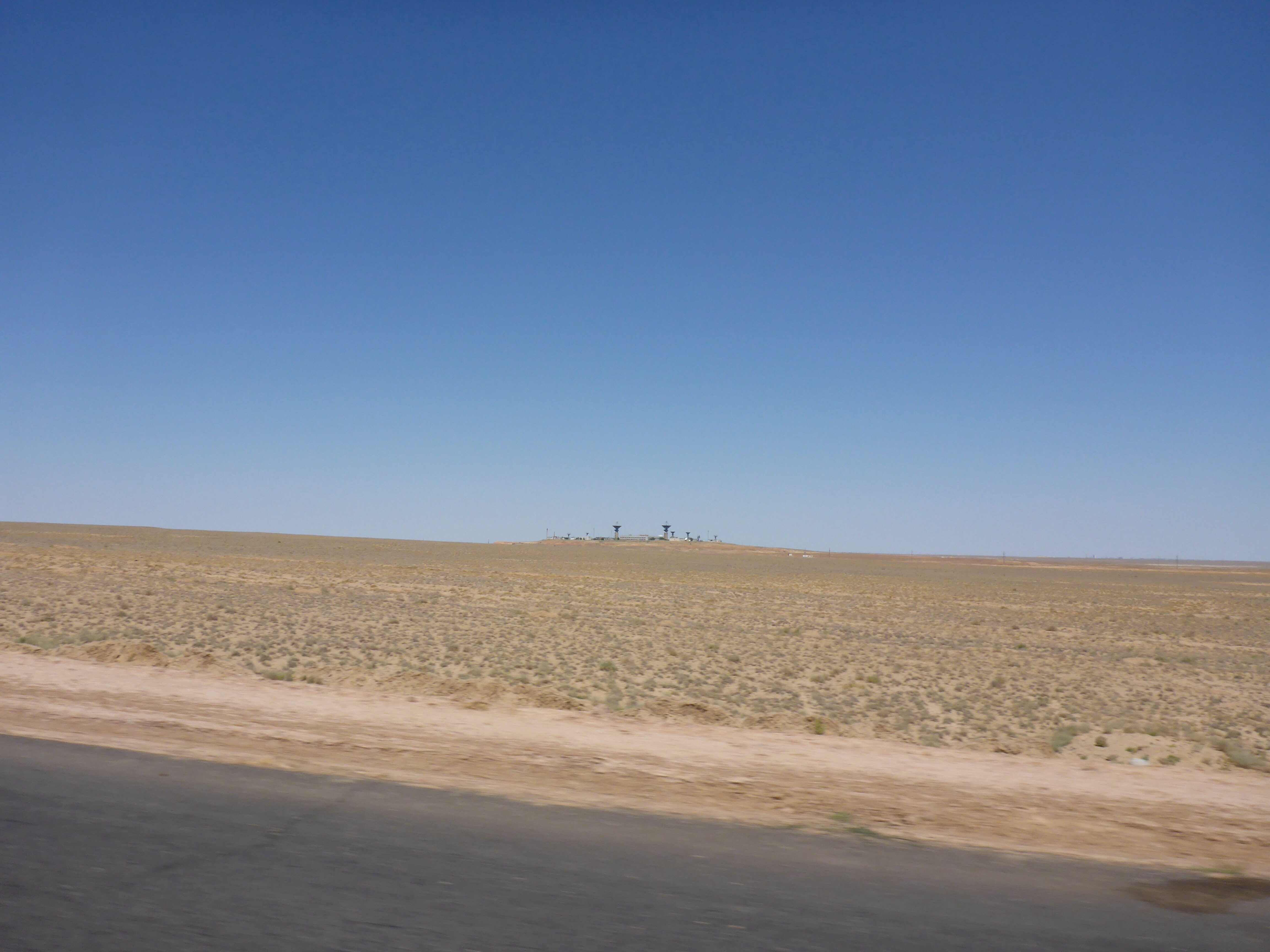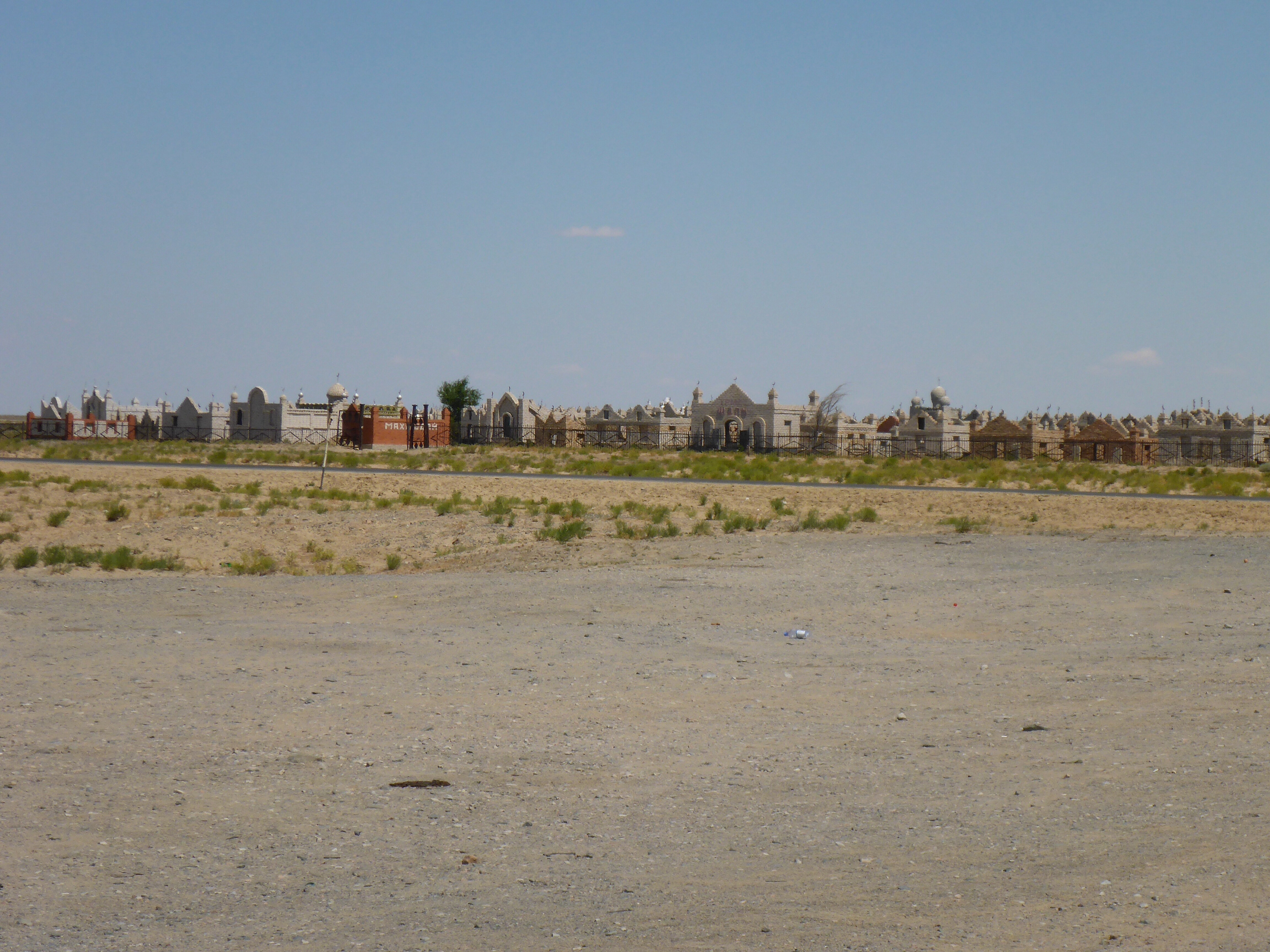 The road from Kyzylorda to Turkistan was mostly incredibly good. Luckily, we’d been warned by the Irish couple we’d met the day before that the speed limit was not what one would expect on a double highway and the cops issued speeding fines (they got 2 in a row) so we were very careful (of course, as always!!). The reduced speed limit was because there were “road works”, although we didn’t see many, except for the fact that the crash barriers in the middle were not finished. Great way to make easy revenue!!