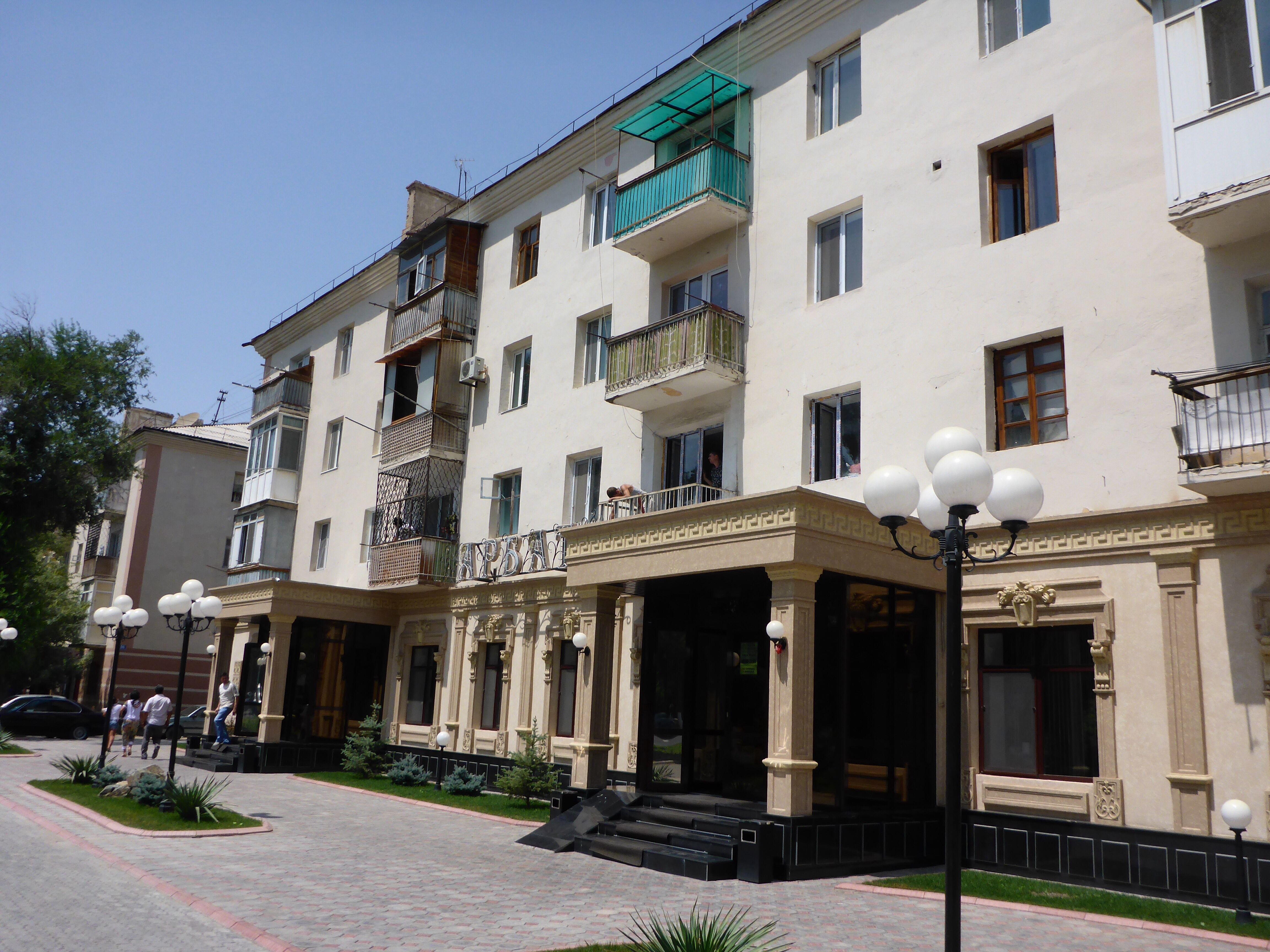We absolutely loved Kazakhstan. So much so that when we arrived in Taraz, our last stop before getting to Bishkek, and knowing that we would arrive in time for our visas, we decided to stay one extra day – just to be in Kazakhstan a little longer. The route we took through Kazakhstan isn’t the usual touristic route, didn’t have the typical stunning scenery or cultural sights, but we don’t feel we missed out on anything and probably got a better feel for the people of Kazakhstan. We didn’t get any photos of the great horsemen on their mobile phones – just another of Kazakhstan great contradictions, like the fact that they drive scarily but never hoot in anger, like this building in Taraz: