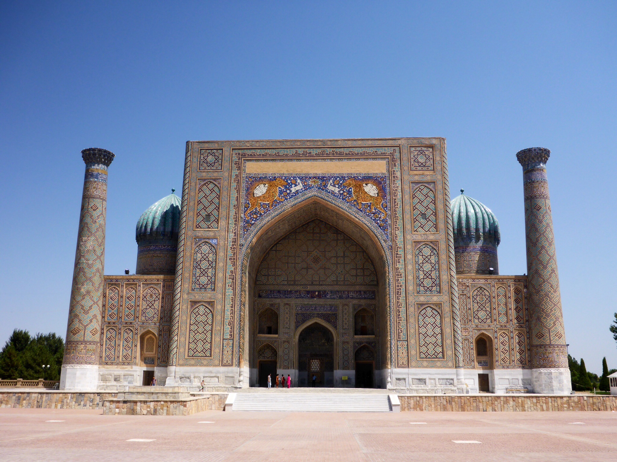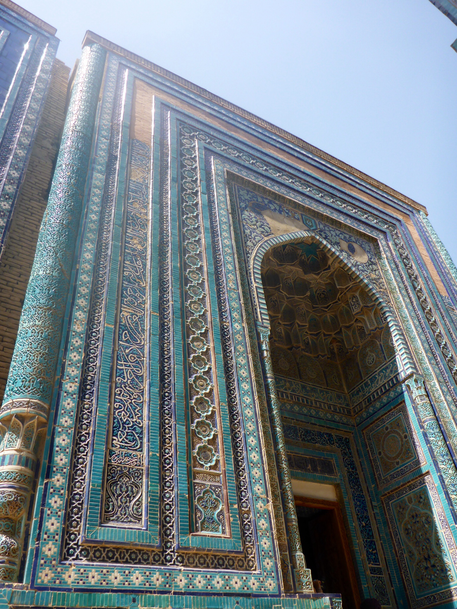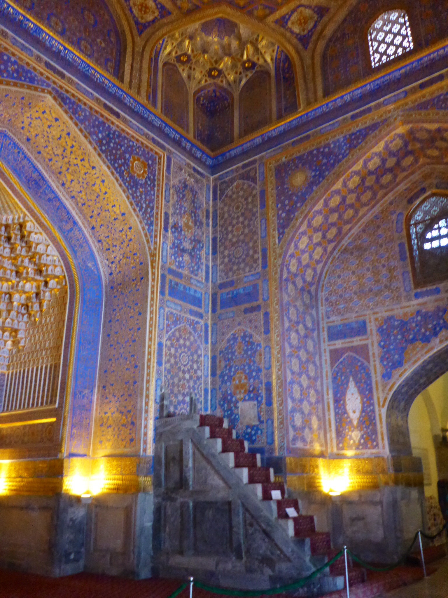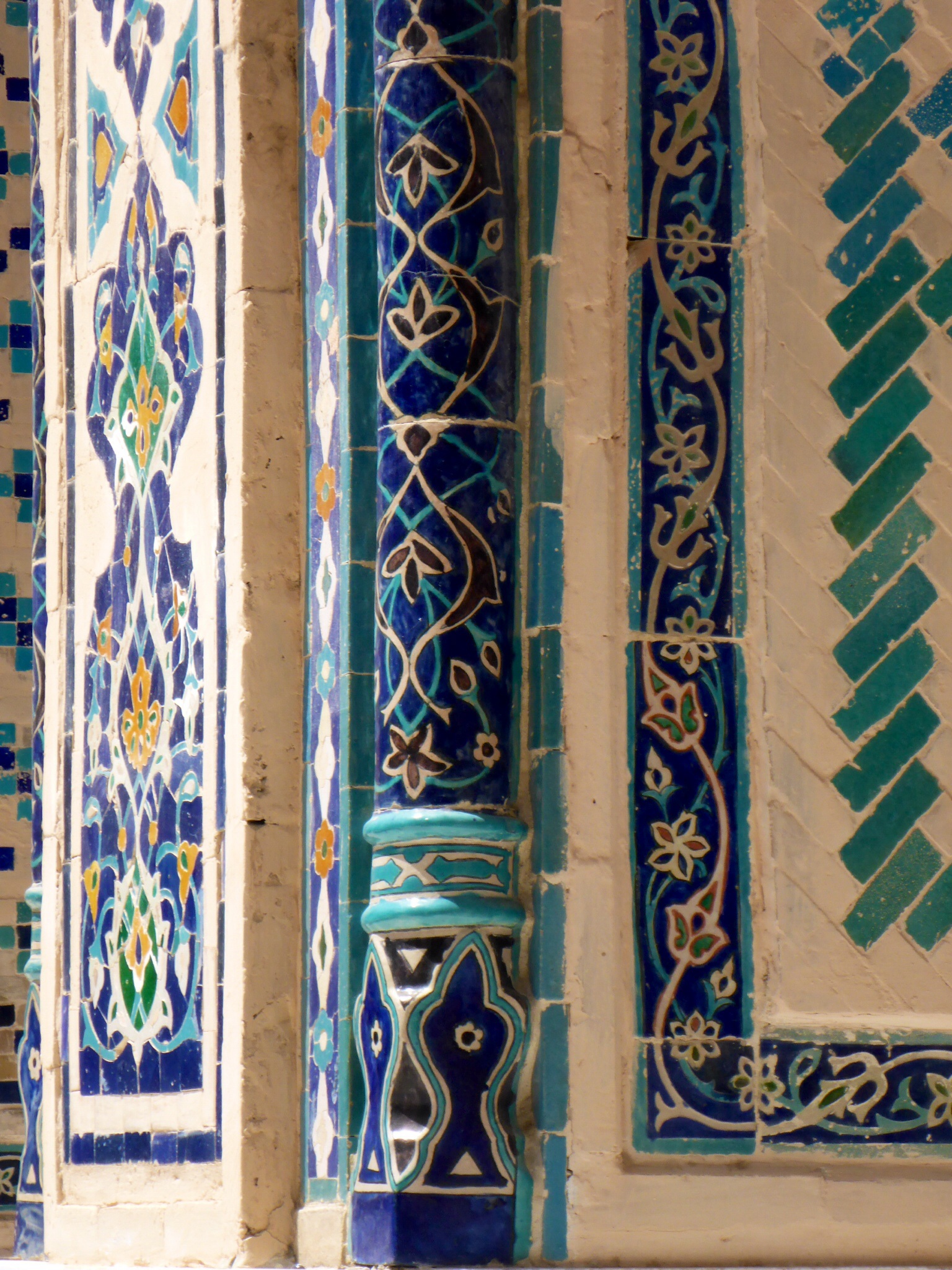 Even though it was long and another stinking hot day, I couldn’t resist going see the Registan again as soon as we arrived!!! We are grateful we have seen this place before in all its glory because it was closed when we arrived for the rehersals of the Music Festival dance routines in a few weeks, with huge platforms, light structures etc. Visiting hours have been reduced to 11am to 4pm. When I visited it again the next day, it didn’t have the same peaceful feel I had remembered from our first visit. It felt more like a work site. I still enjoyed seeing it close up though – the workmanship, the colours, sheer beauty, majesty, balance, and even the serenity was still there in places. I felt sorry for first time tourists though. I went back again the next day for a leisurely stroll. Here are a few photos – I had to restrain myself!!