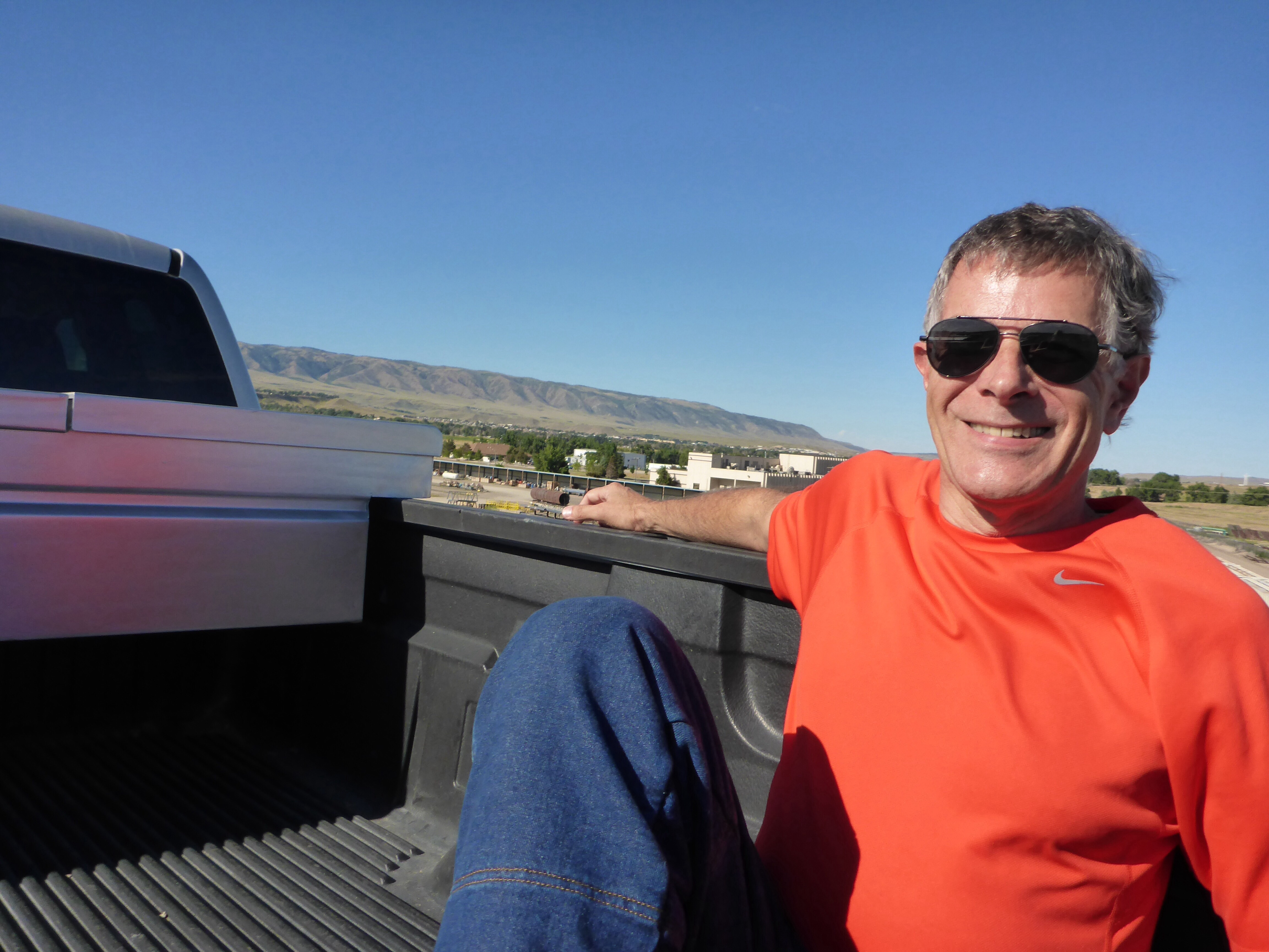 Amongst many other trips, he travelled around the world on a bicycle back in 2005. How inspiring. And what a character. We told you we were slow!!!! He tells us that he is following the American pioneers’ trails and is heading to Independence rock tomorrow. I remember we rode right past it on our way to Casper but didn’t know the significance of it. Pioneers used to scratch their name and date onto the rock as a way of letting other family members know they were at that point and when they came through. It is important for Jean to scratch his name into that rock for his great grand children. Stopping at that point was out of the question anyway for us as it was so windy. He is looking for a hotel and asks us where we’re staying. That is too expensive for him. Anthony suggests to me that we could pay for a room for him at our hotel – of course. Jean is touched by Anthony’s offer but turns it down. He does not need money, he just doesn’t like to spend that much on accommodation. We tell him that many people have been kind to us and it is our pleasure to do something for him. But no, he won’t have it. It is now pouring. We eventually say goodbye and tell him we’re going to McDonald’s for lunch. As we sit down with our lunch at McDonald and Jean turns up. He wanted to chat with us some more. I am enjoying chatting in French. Anthony leaves us and we carry on chatting for another hour. The offer is still open I tell him but he says that the offer is as good as if he took it up. What a great, inspiring man. I hope we manage to see him again when we return to France.