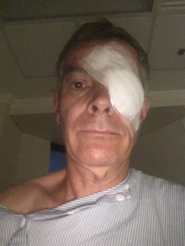 Dr Shama the surgeon comes to visit in the morning. He says the operation went well. They discovered five tears, four on top and one at the side. The gel was thicker than usual so as you age it the gel shrinks and can pull the retina off the wall. Normally 1:15000 risk now for my second eye 1:15 risk of it occurring – ouch. It may be months before we know how successful or not the surgery has been.