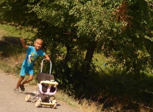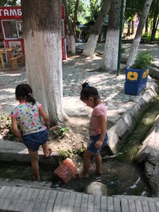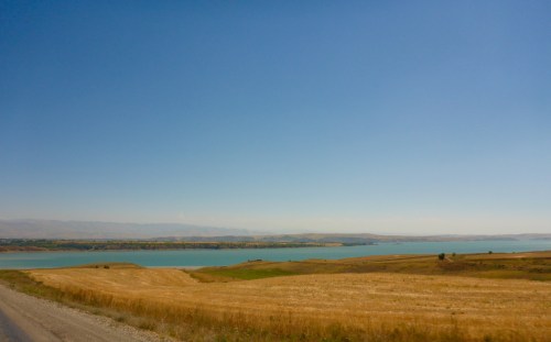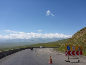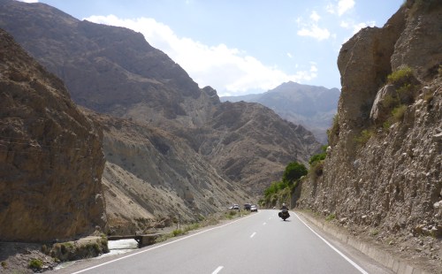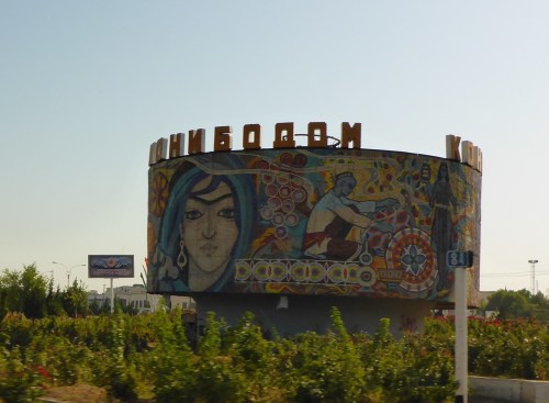 We leave Dushanbe just after sunrise as we have a long day ahead of us, with a border crossing and some dirt road. I will be very happy if we make it to Shahrisabz in Uzbekistan tonight so that we can get to Samarkand the next day – we have been delaying our arrival in Samarkand for one reason or another. We head out of Dushanbe on the M41 heading west. The lighting is a soft golden glow – I could nearly become a morning person it is so beautiful at this time of the day. For the next hour, as we ride from village to village, the road is divided with thousands of roses or gladioli, and lined with huge posters of Emomali Rahmon, who has served as President of Tajikistan since 1994, either picking apples in orchards or opening aluminium plants. The curbing is freshly painted – it feels like we are going from a village what would have been voted tidy town to the next tidy town. We also see women collecting litter from the roadside drain, and people standing by the side of the road waiting for a lift to work, young kids travelling with their donkey and cart or odd cow. As pretty as the villages are, it is obviously a hard life here. It has been a short stay in Tajikistan, we haven’t seen a fraction of what most people visit Tajikistan for, such as the Pamirs, because I suffer from altitude sickness so badly, but we have enjoyed every minute of our stay: stunning scenery, gentle smiling people and the easiest, calm driving style of all the Stans. I know the cars are terribly underpowered here, but the Tajiks nature is palpably different.