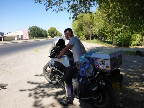 A couple of Czech riders we met earlier were stopped on the side of the road so we pulled over: they had just found some fuel. We don’t quite understand the shortage of fuel in Uzbekistan. It is worse now than 3 years ago as cars have had time to convert to methane or propane and every petrol station has either converted or mostly simply shut down. So we have to look for the tell tale water bottle on the side of the road, or stop and ask. This time, the transaction is made from the back of this guy’s boot/trunk. We bought some Octane + in Dushanbe to boost the fuel composition and have cut up some pop-socks to use as filters. We are now good to get to Samarkand which is a relief. Interestingly, we have seen more travellers today than we have in the past few months: 1 set of Czechs, 1 set of Slovaks, a cycling Dutch couple and a few Mongol Rally cars. That rally sounds like a lot of fun: I think about 300 cars enter the London to Ulan-Baatar ‘race’. The rules are simple: you can only enter a small underpowered cheap car, 1 litre or less, you have to fix the car yourself when it breaks down and raise a certain amount of money for charity. It was a perfect opportunity for us to convert some left over Tajik money.