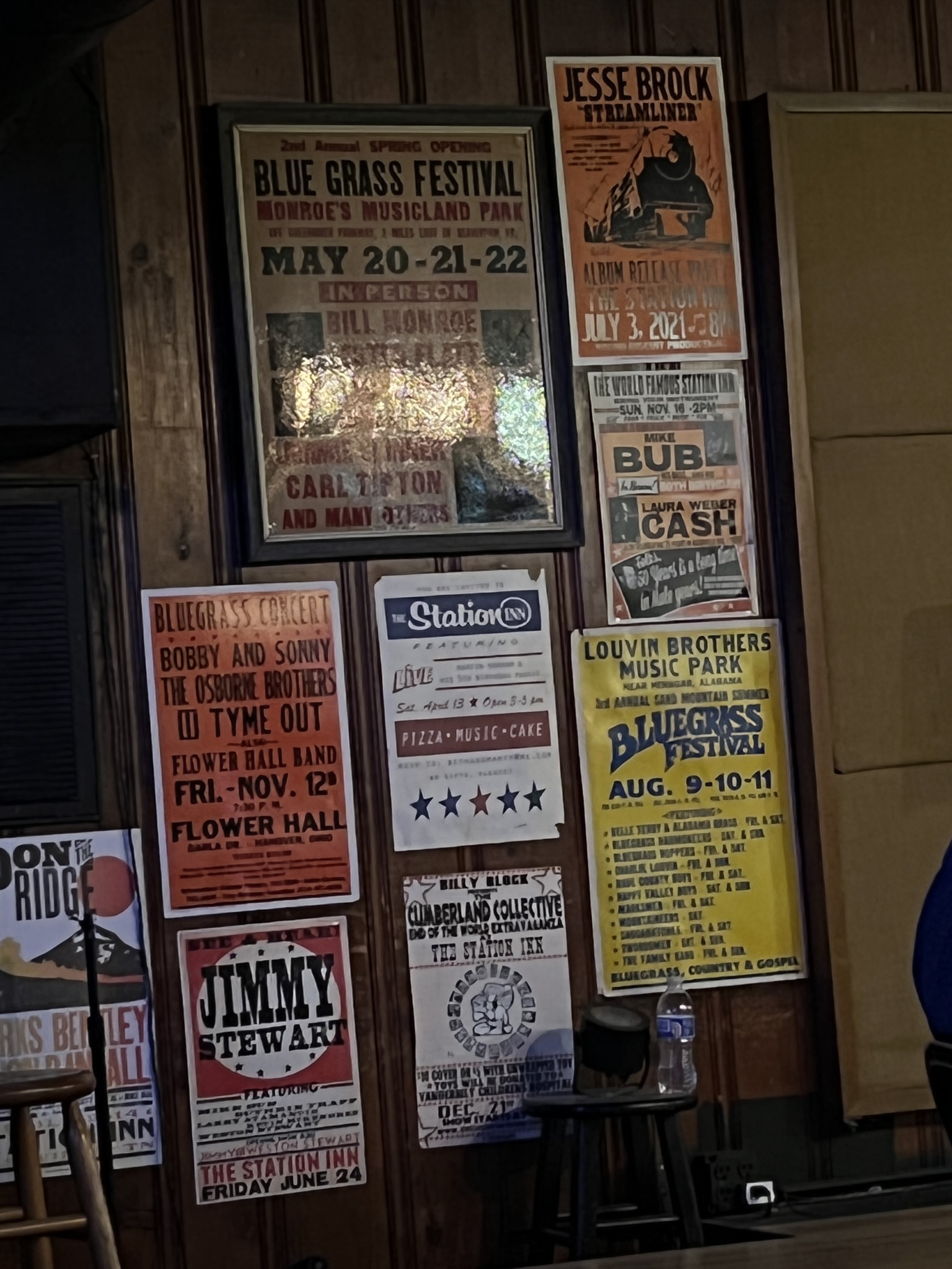 The walls are covered with generations of posters from previous events. Since “The Station Inn” has been running since 1974 there is quite a range of dates. With my almost non-existent County Music knowledge I do not know any of the names. Anne may be better placed as she used to enjoy country music when she was driving the Australian outback roads by herself in a 4×4 in a previous life.