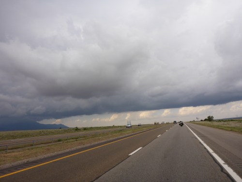 After an unplanned and fantastic week in Santa Fe, it is time to move on but the weather forecast is abysmal. Massive storm cells, high winds and snow is forecast. A check of the weather radar decides our route and departure time this morning: it has to be an early start and no time to take scenic roads unfortunately. South then west is the way today. We get to Gallup, New Mexico, 320kms away, having dealt with strong winds, managed to squeeze between storms, and pretty much avoided the rain all day. Five minutes after arriving at our motel, it sleeted – the wind so strong it covered our bedroom window. So lucky.